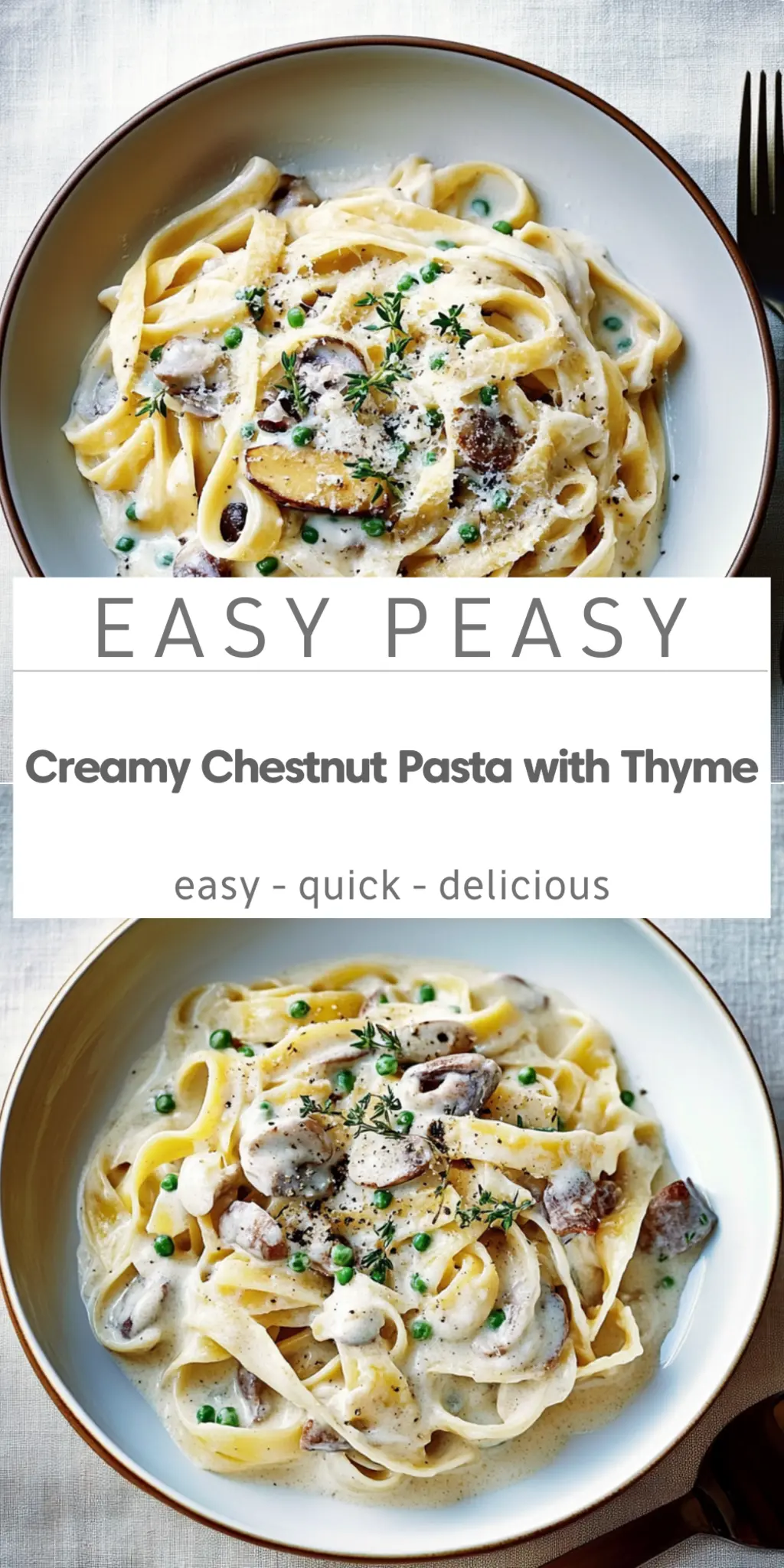A comforting Creamy Chestnut Pasta with Thyme that's simple to prepare and full of rich flavors.