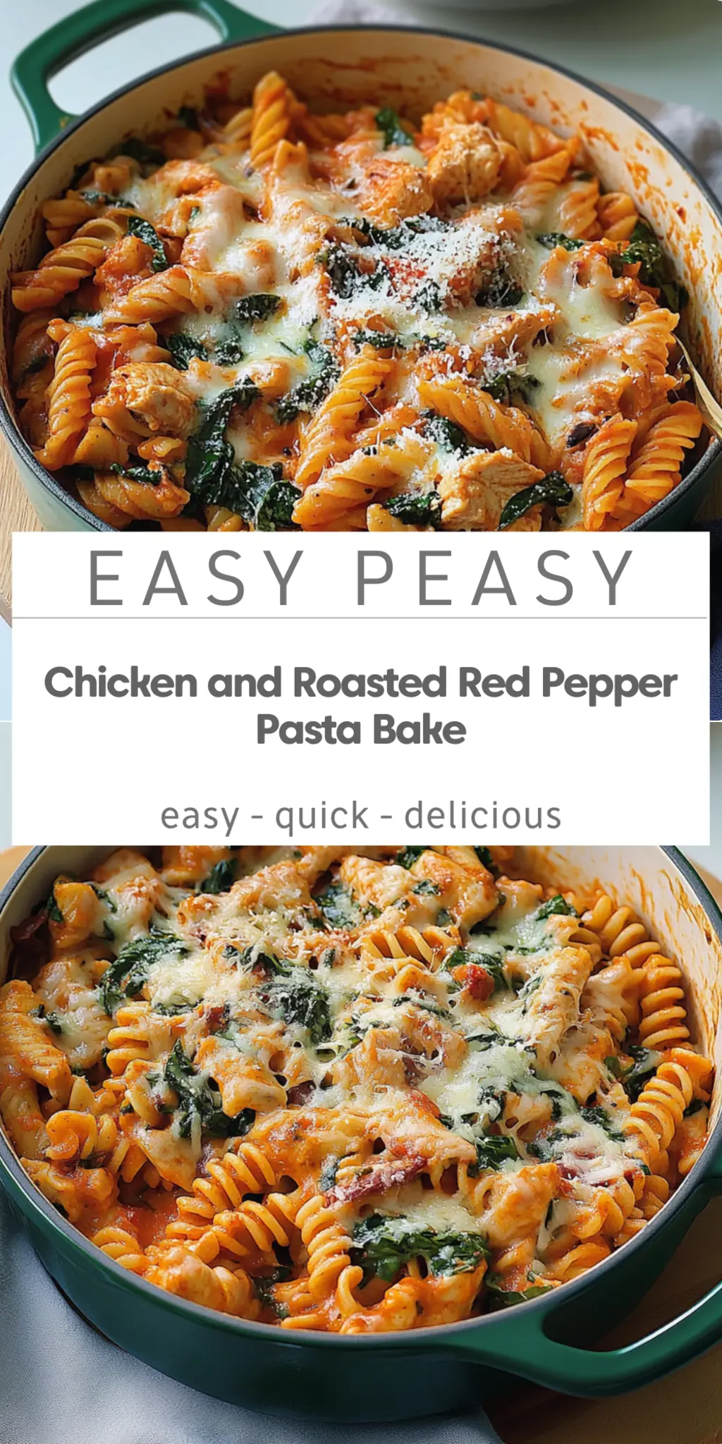 Experiment with Cheese: Feel free to mix different cheeses—like mozzarella or provolone—for a unique twist on the Chicken and Roasted Red Pepper Pasta Bake.