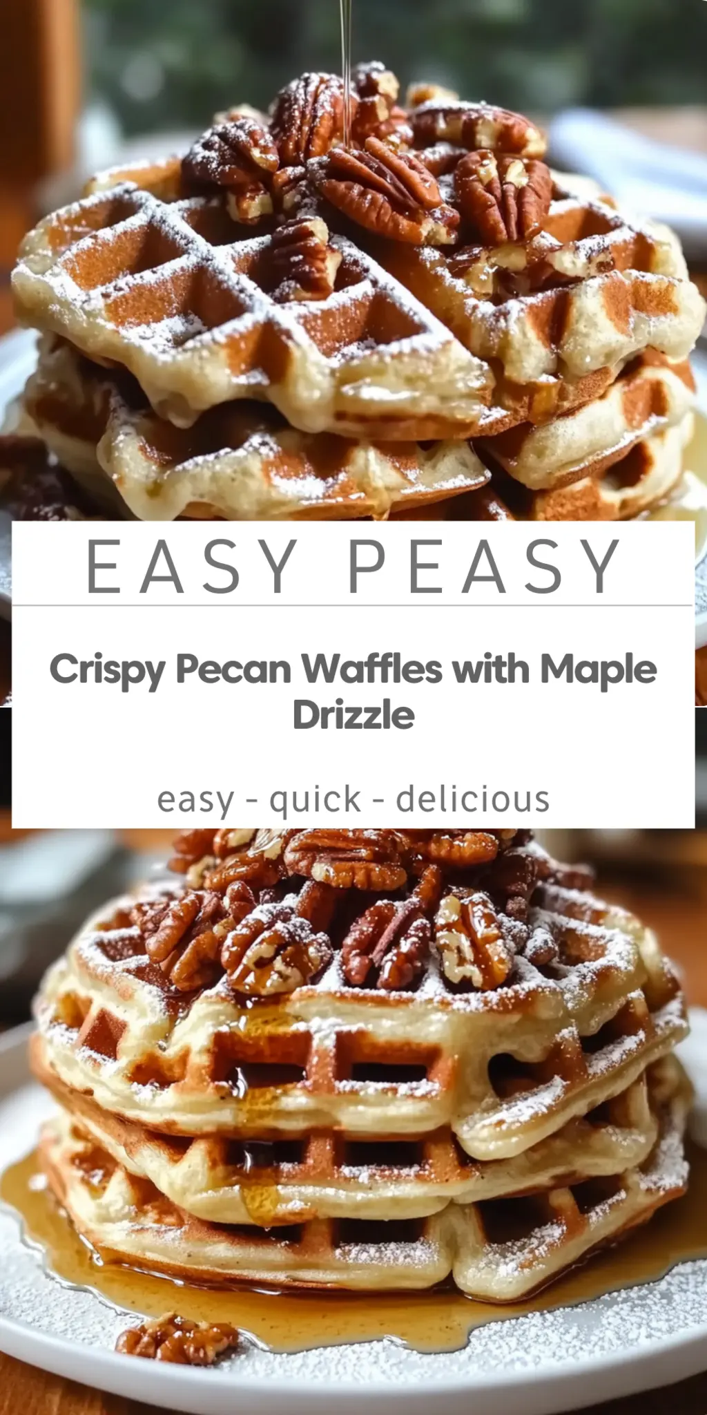 Irresistibly Crispy Pecan Waffles with Maple Drizzle Delight
